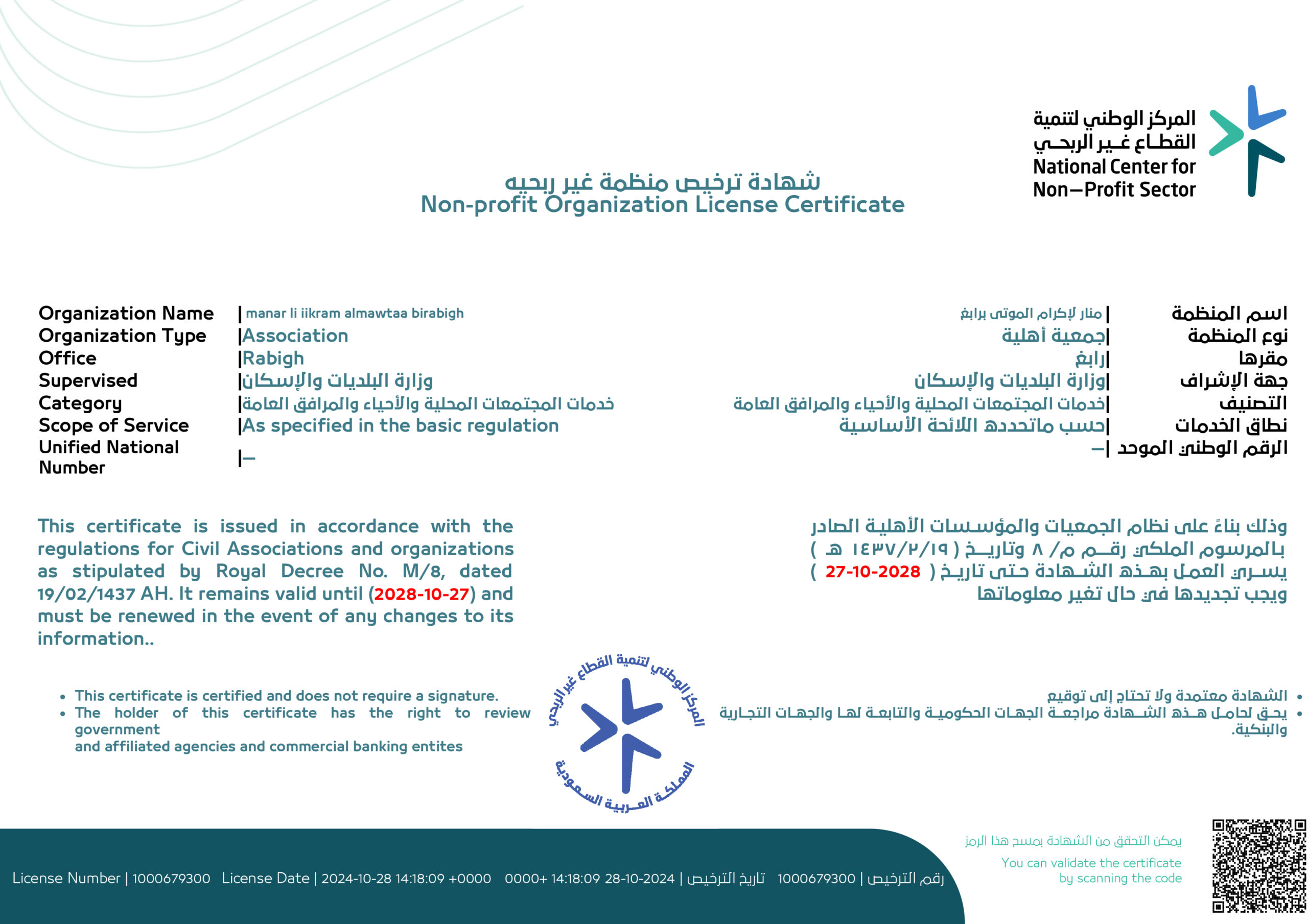 تقديم خدمات متكاملة للعناية بالموتى وذويهم، بكل مهنية وفق الضوابط الشرعية، وبروح من الرحمة والمسؤولية الاجتماعية، وبمشاركة مجتمعية فاعلة.